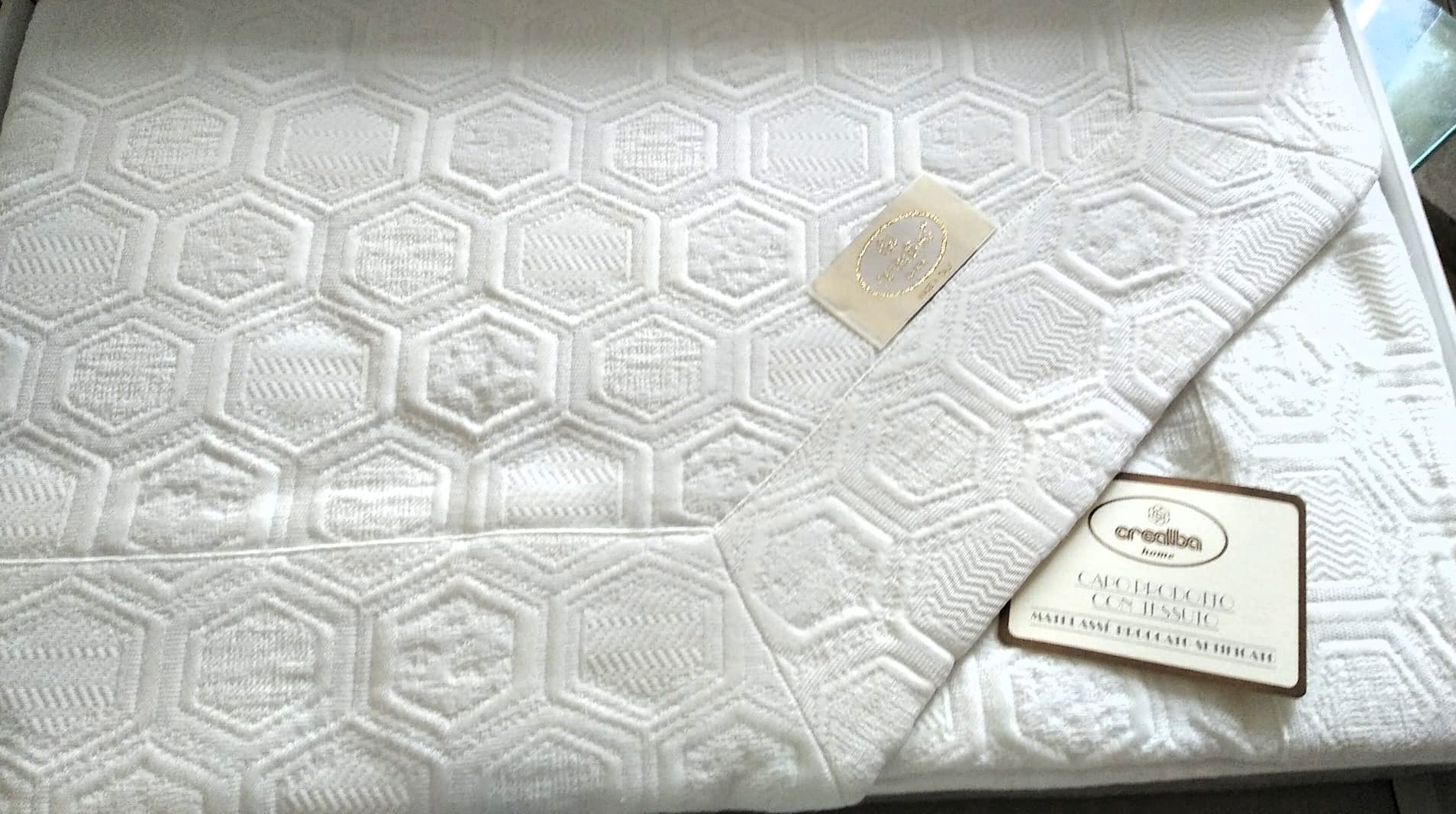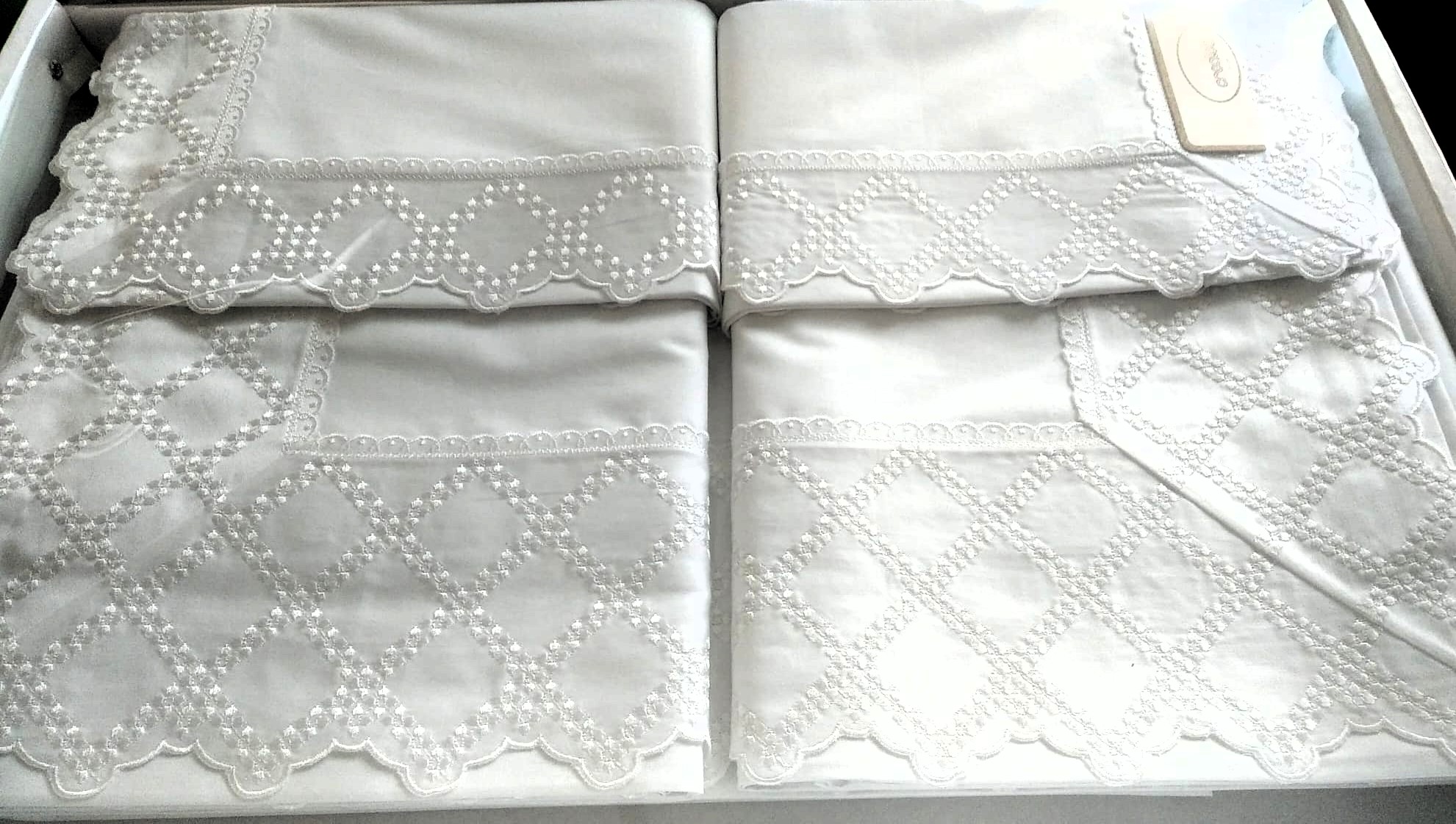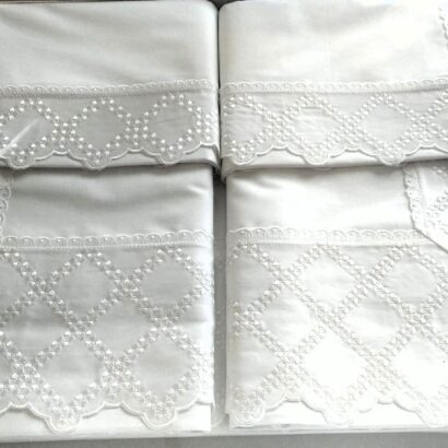 Magnifico coordinato lenzuolo e copriletto matelasse’ in puro cotone colore bianco  pizzi artigianali visibili in foto capo unico nel suo genere confezionato in una elegante valigetta . Articoli prodotti e confezionati artigianalmente in Italia   Sconto 10% con iscrizione newsletter oltre al prezzo super scontato
